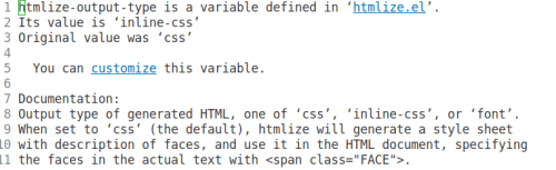 2.0 Change the value of the variable htmlize-output-type to inline-css by the following steps: